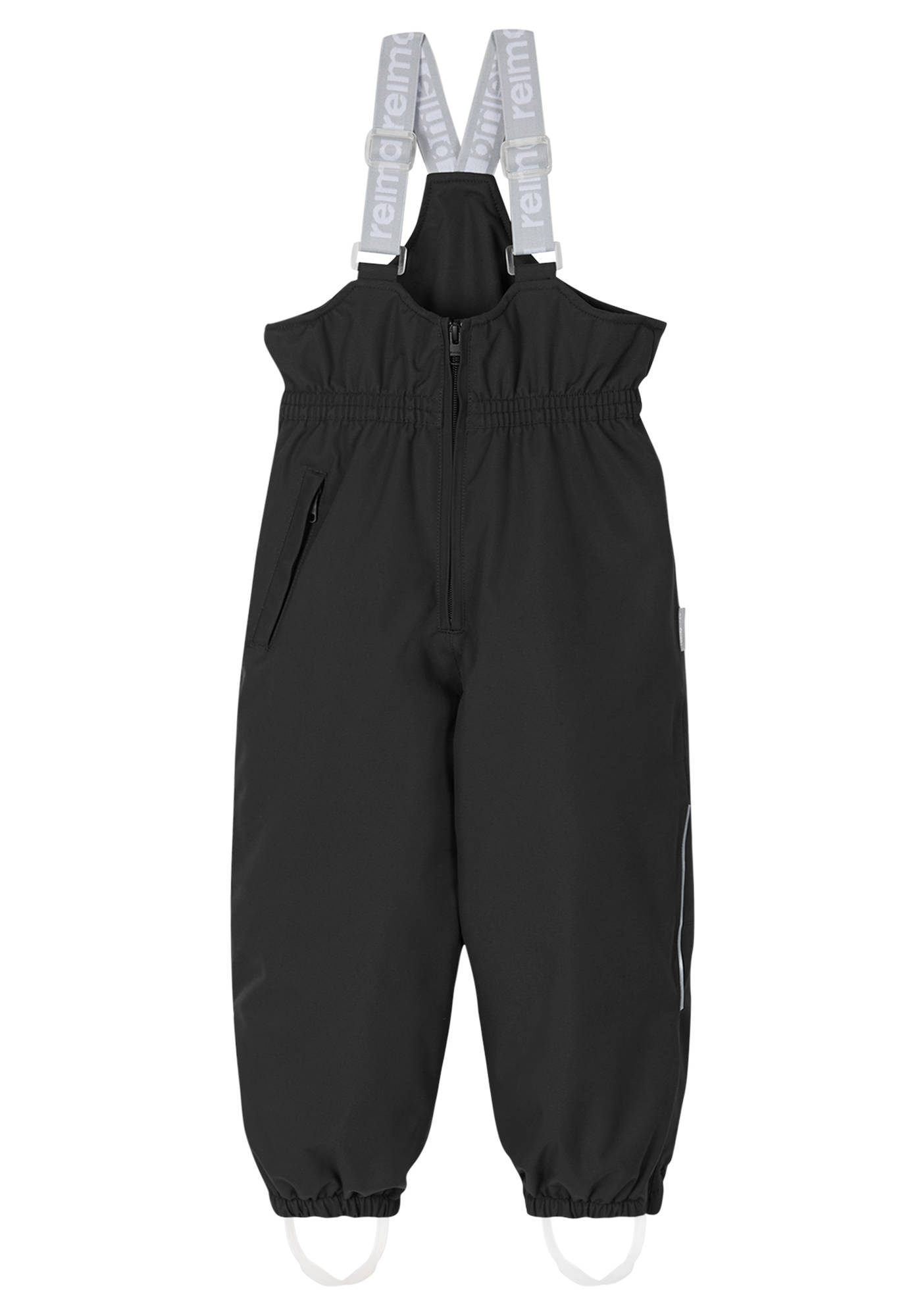 Reimatec Juoni toppahousut Black ovat erittäin kestävät talvihousut lumileikkeihin, pulkkamäkeen ja mihin tahansa talvipäivien puuhiin. Mustat korkeavyötäröiset housut säädettävillä henkseleillä.