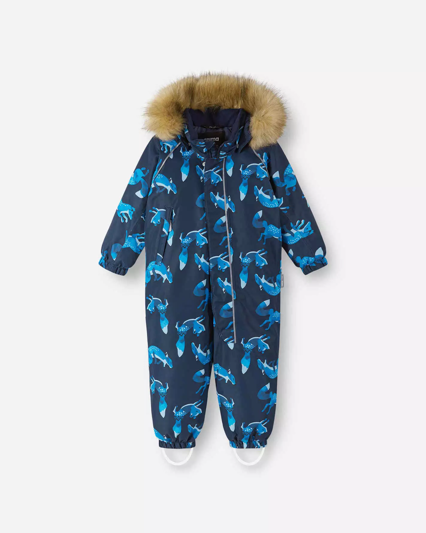 Reimatec Lappi talvihaalari Navy on lämmin haalari kaikenlaiseen talviulkoiluun. Pitkä vetoketju helpottaa pukemista ja takamuksessa oleva lämmike lämmittää lasta istuessaan lumella.
