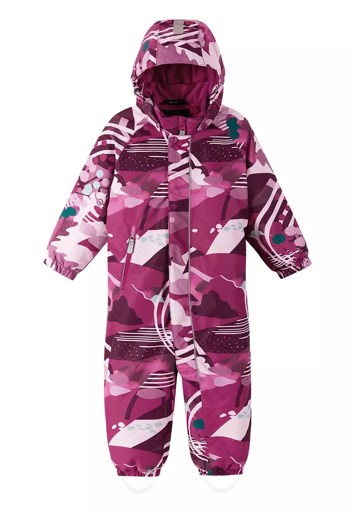 Reimatec Puhuri talvihaalari Cool burgundy on taaperon vedenpitävä talvihaalari, jonka kaikki saumat on teipattu vedenpitäviksi. Haalarin materiaali sisältää kierrätyskuituja ja hylkii vettä ja likaa erinomaisesti.