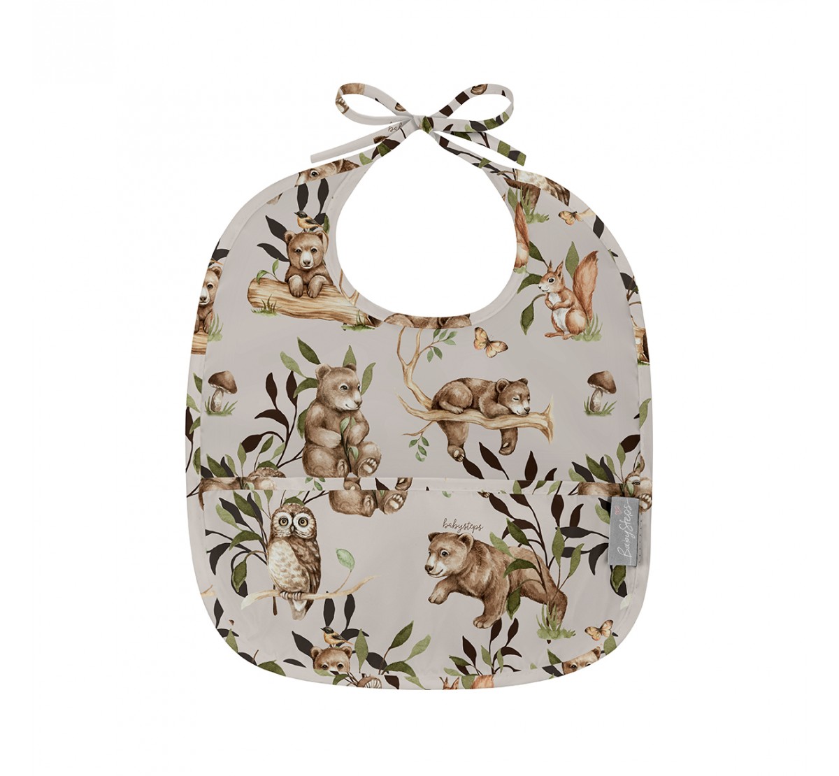 Ruokalappu BabySteps Happy Bear light on ruokalappu joka suojaa lapsen vaatteita ruokaillessa. Ruokalappu solmitaan niskan takaa nauhoilla ja kouru kerää tippuneet ruuat talteen. Helppo pyyhkiä kostealla.