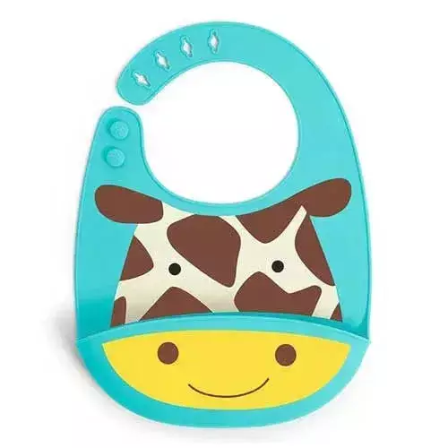 Ruokalappu silikonia SkipHop Kirahvi helpottaa ruokailuhetkiä lapsen kanssa. Ruokalappu on helposti puhtaana pidettävää silikonia, jonka voi pyyhkäistä tai huuhdella puhtaaksi käytön jälkeen. Ruokalappu ei kasvata pyykkivuorta!