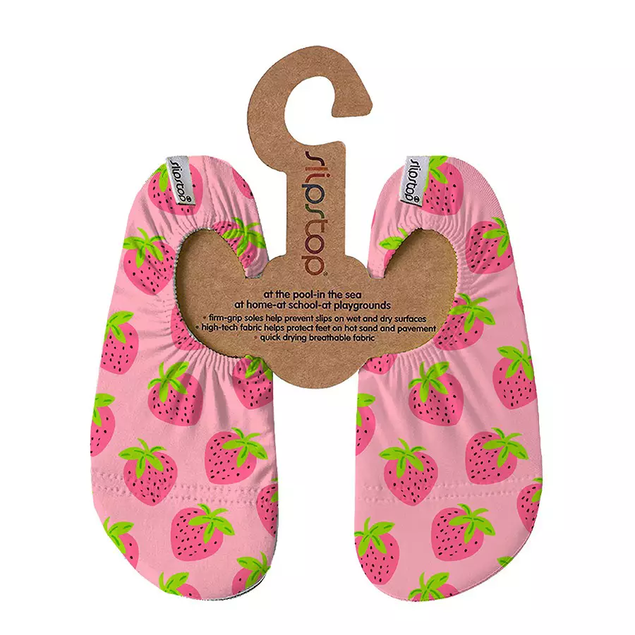 Slipstop tossut Berryfull ovat jokapaikan tossut hauskalla mansikka kuosilla. Tossuja voi käyttää päiväkodissa, koulussa, rannalla, veneessä, tai kotona. Höyhenen kevyet tossut, jotka tuntuvat kuin kävelisi paljain jaloin.