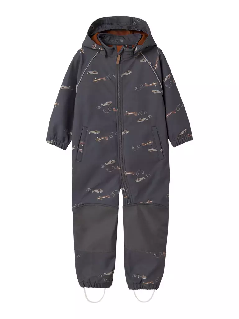 Softshell haalari Name It Alfa Grey Pinstripe Airplane on täydellinen valinta välikauteen, jossa tummalla pohjalla on lentonkoneiden kuvia. Alfa-haalari on erittäin suosittu valinta päiväkoti-ikäisille.