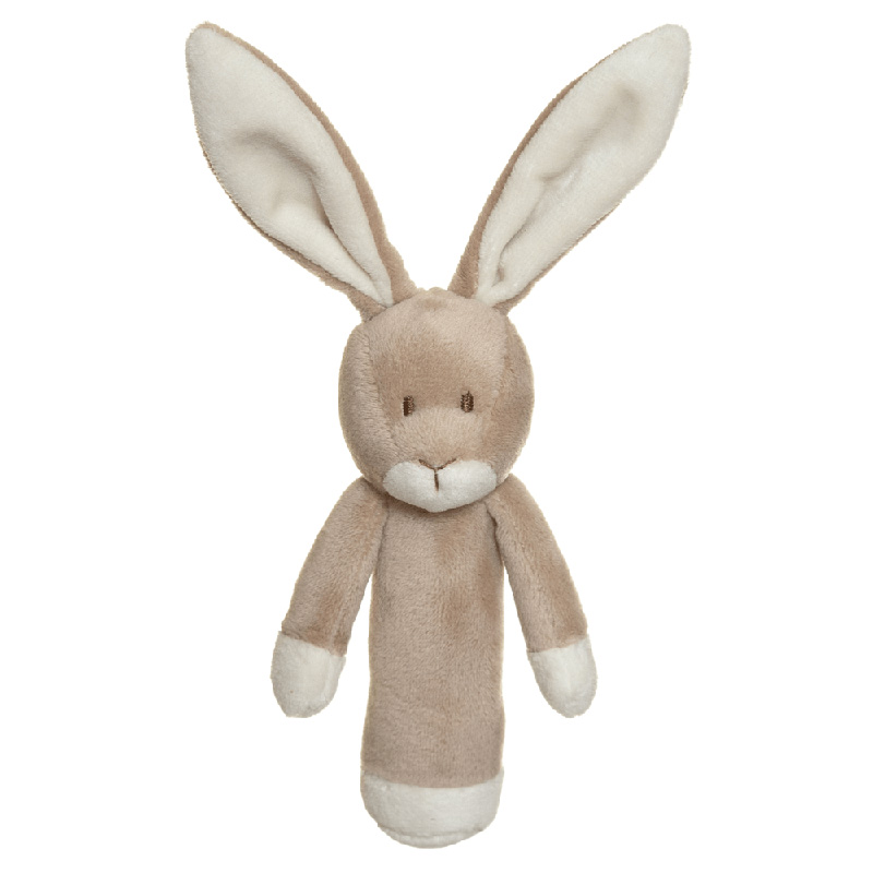 Suloinen pupuhelistin vauvalle. Hempeäasti helisevästä lelusta on helppo tarttua kiinni pienillä sormilla.