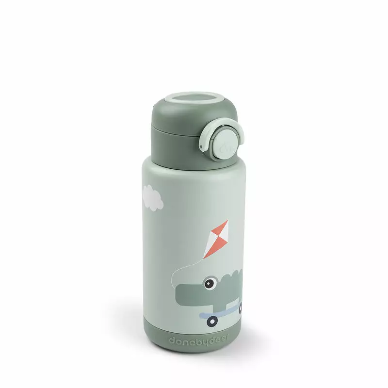 Vihreän värisessä juomapullossa seikkailee suloiset krokotiili ja lintu eläinystävykset. Pullon tilavuus on 340 ml. Valmistettu ruostumattomasta teräksestä, joka kestää mukana arjen seikkailuissa päivästä toiseen.