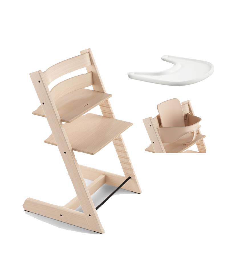 Tripp Trapp starttipaketti Stokke Natural sisältää Stokken Tripp Trapp syöttötuolin, Baby Setin ja tarjottimen.