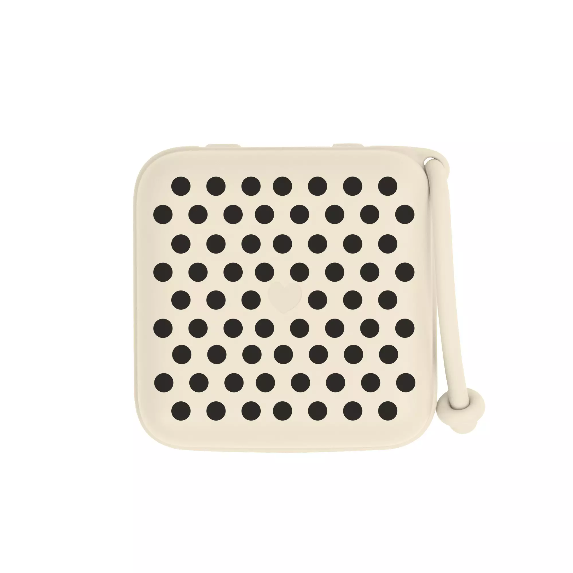 Tuttikotelo Bibs Ivory/Polka Dots on monikäyttöinen kotelo tuteille. Koteloon mahtuu kolme Bibs-tuttia ja kotelon voi ripustaa silikonisesta lenkistä roikkumaan. Ripustin sopii myös tutille. Tuttikotelo sopii hyvin tuttien säilytykseen tai vaikkapa lapsen tärkeille aarteille ja leluille. Koteloa voidaan käyttää myös tutin sterilointiin mikrossa. Tuttikotelo on valmistettu 100% turvallisesta elintarvikelaatuisesta materiaalista. Mukana tuttisovitin, johon mahtuu yksi tutti.