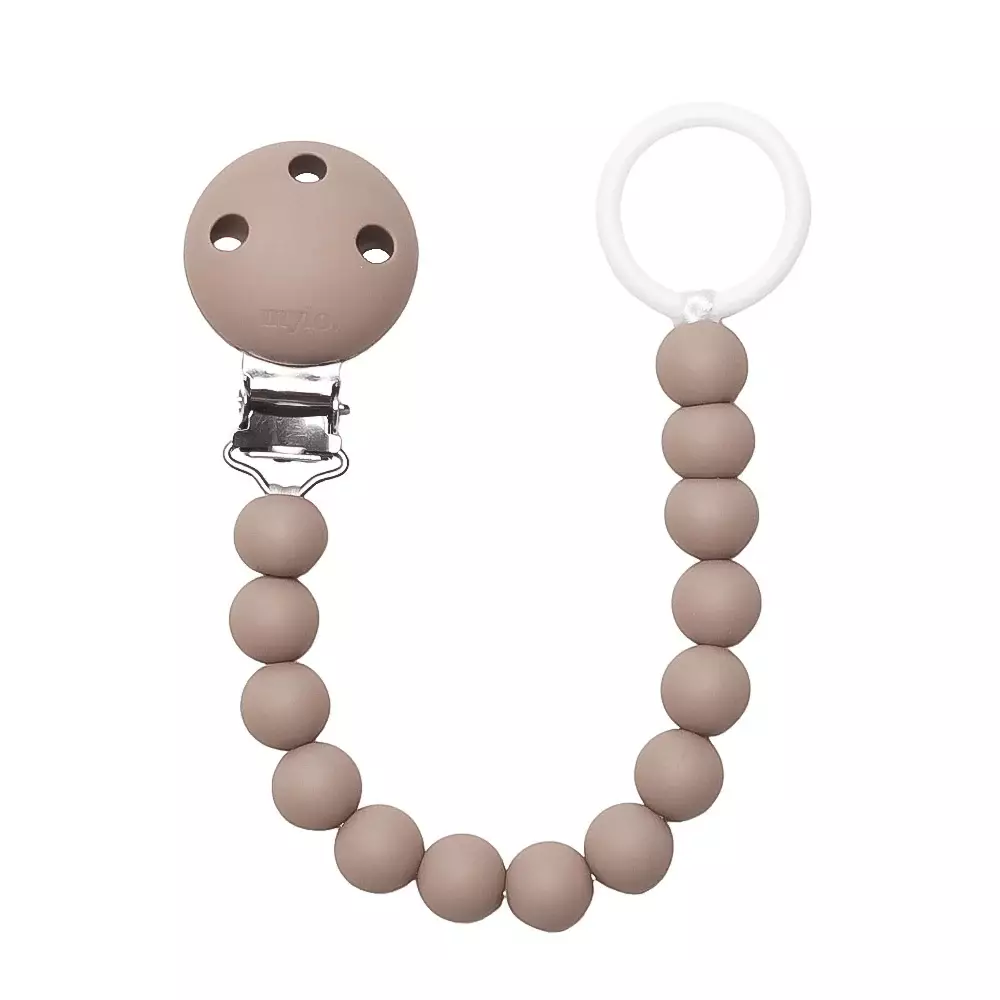Tuttinauha on valmistettu BPA-vapaista elintarvikesilikoni-helmistä ja tuttirenkaasta sekä satiininyöristä.
