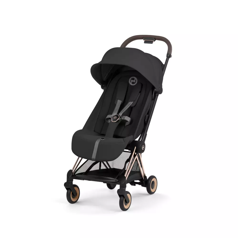 Cybex Coya Comfort matkarattaat Rosegold, Sepia Black - ultrakompakti matkaratas, jossa yhdistyvät tyylikäs design ja erinomainen toiminnallisuus. Kompakti ja kevyt COŸA taittuu käsimatkatavarakokoon sekunneissa superhelpolla yhden käden kasaustoiminnolla. COŸA tuo ylellisyyttä koko matkan ajaksi - ergonominen makuuasento ja integroitu jalkatuki tarjoavat lapselle ainutlaatuista mukavuutta ja yhden käden vetovaljaat tarjoavat erinomaisen turvallisuuden ja vaivattomuutta.