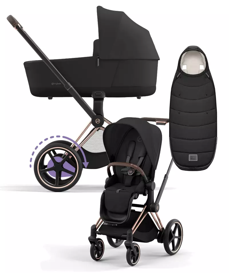 Cybex ePriam 4 lastenvaunut Rosegold-rungolla ja Platinum-lämpöpussi - saat kauniit, laadukkaat lastentarvikkeet samassa paketissa. Tämä paketti sisältää huippuvarustellut yhdistelmävaunut sekä lämpimän ja tyylikkään Cybex Platinum lämpöpussin!