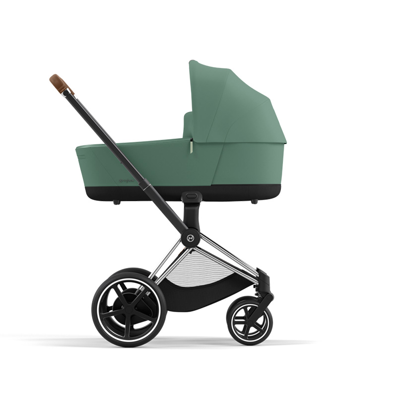 Tämän Cybex ePriam yhdistelmävaunun runkoväri on Chrome/Brown.