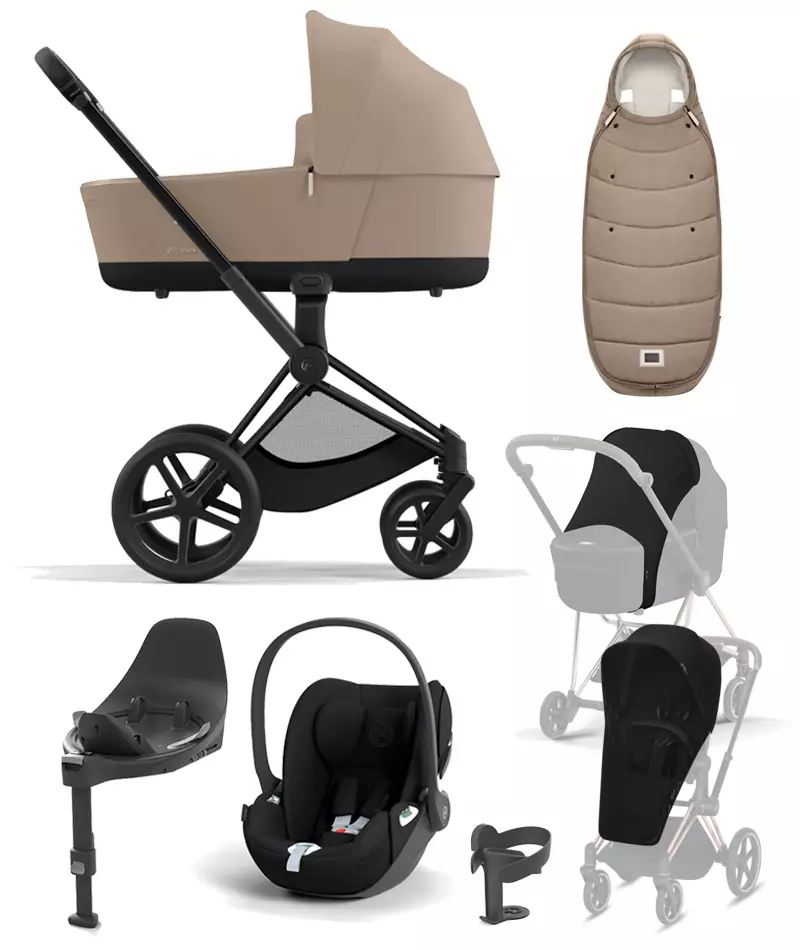 Cybex Priam 4 yhdistelmävaunuihin on saatavilla myös paljon lisävarusteita. Katso ne Yhteensopivat tuootteet -välilehdeltä.