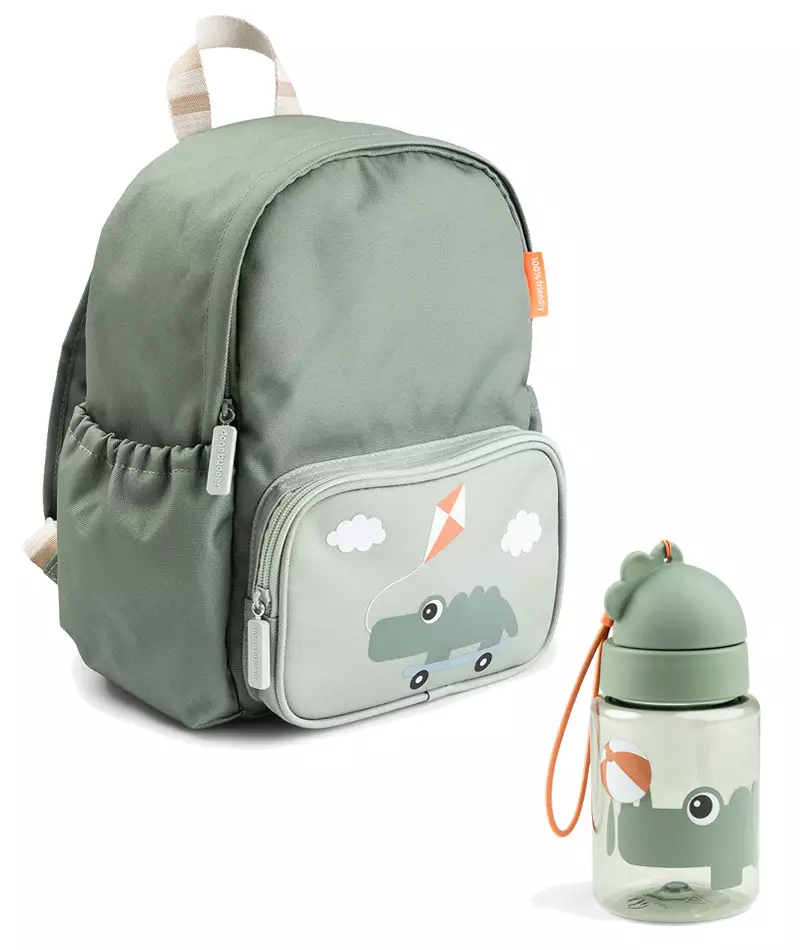 Lasten reppu-bundle Done by Deer backpack, Playground Green setti sisältää repun ja pillipullon - täydellinen setti lapselle retkelle ja päiväkotiin. Suloinen vihreän sävyinen reppu lapselle minne voi kätkeä kaikki aarteet tai pakata varavaatteet ja muut tarpeelliset tavarat. Pinta on vettä hylkivä ja helposti pyyhittävä, ja sen takia reppu onkin loistava lapsen käytössä.