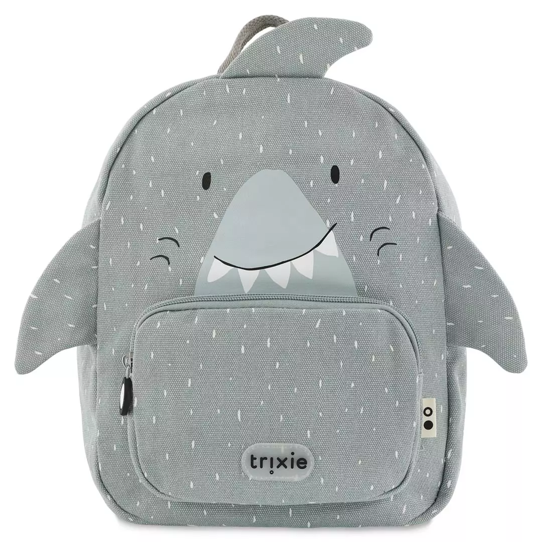 Lasten reppu Trixie backpack, Mr. Shark on täydellinen kumppani lapselle päiväkotiin, kerhoon ja retkelle. Repussa on yksi päälokero ja erillinen pienempi tasku edessä. Molemmissa taskuissa vetoketju isolla helppokäyttöisellä vetimellä. Repussa on leikkisä hain kuva sekä yksityiskohtana hauskat evät sivuilla.