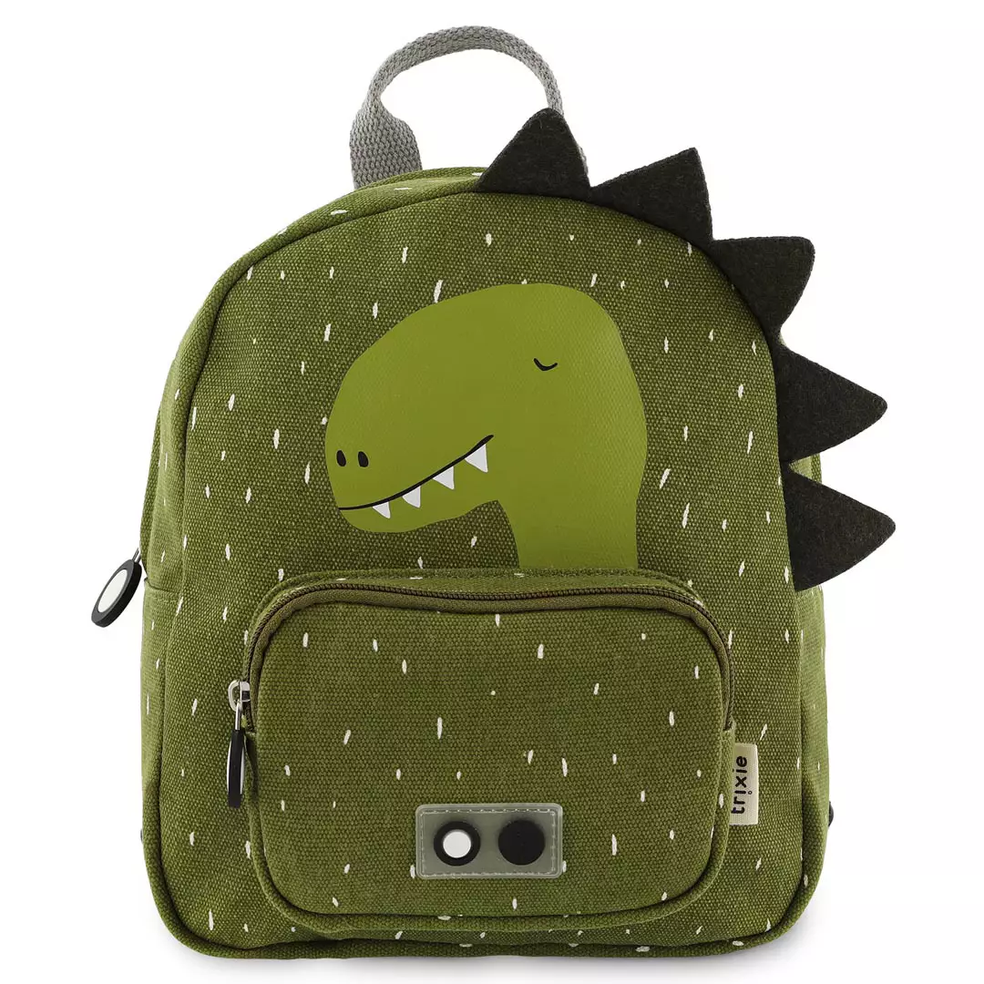 Lasten reppu Trixie backpack small, Mr. Dino on täydellinen kumppani lapselle päiväkotiin, kerhoon ja retkelle. Repussa on yksi päälokero ja erillinen pieni tasku edessä. Molemmissa taskuissa vetoketju isolla helppokäyttöisellä vetimellä. Repussa on leikkisä dinon kuva sekä yksityiskohtana hauskat dinon piikit sivulla.