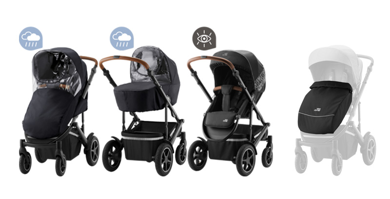 Lisävarustepaketti Britax Smile III ja 4 4in1 sisältää sadesuojat vaunukopalle sekä ratasosalle, heijastinkuomun sekä jalkapeitteen. Tällä paketilla pärjäät sateessa ja pimeällä! Heijastava kuomu antaa lisäturvaa pimeällä liikkumiseen - vaunut ja rattaat erottuvat helpommin pimeässä. Paketissa on mukana myös sadesuojat vaunukoppalle ja ratasosalle.