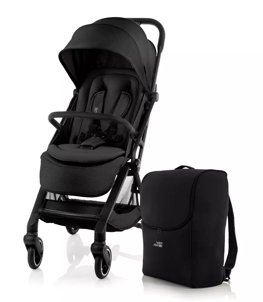 Matkarattaat BRITAX Flylite ja Travelbag Carbon Black - Kevyt, käsimatkatavaraksi hyväksytty matkaratas on suunniteltu perheille, jotka liikkuvat nopeasti ja makustavat kevyesti - Ready to takeoff, made to move. Flylite yhdistää kompaktin mukavuuden harkittuihin ominaisuuksiin, kuten yhden käden kasaus, hengittävä mesh-istuin ja portaattomasti säädettävä selkänoja.
