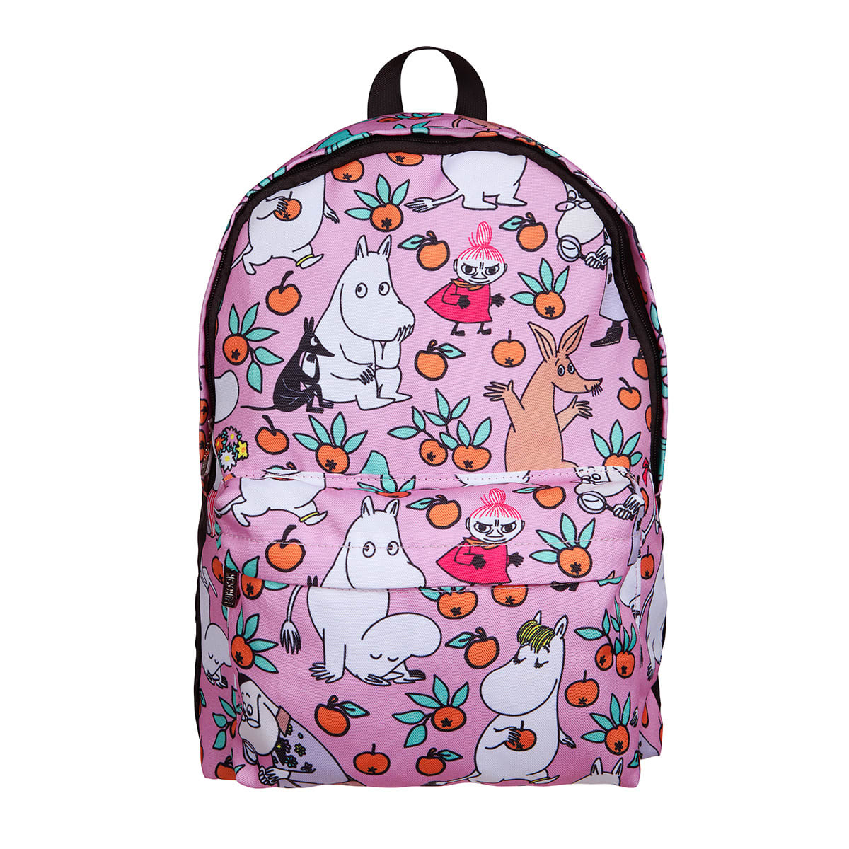 Muumi Nipsu reppu Omenat Liila on tukevilla olkaimilla varustettu selkäreppu lapselle. Liilan värisessä repussa on ihana Omenat-kuosi, jossa Muumilaakson väki poimii herkullista omenasatoa talteen.