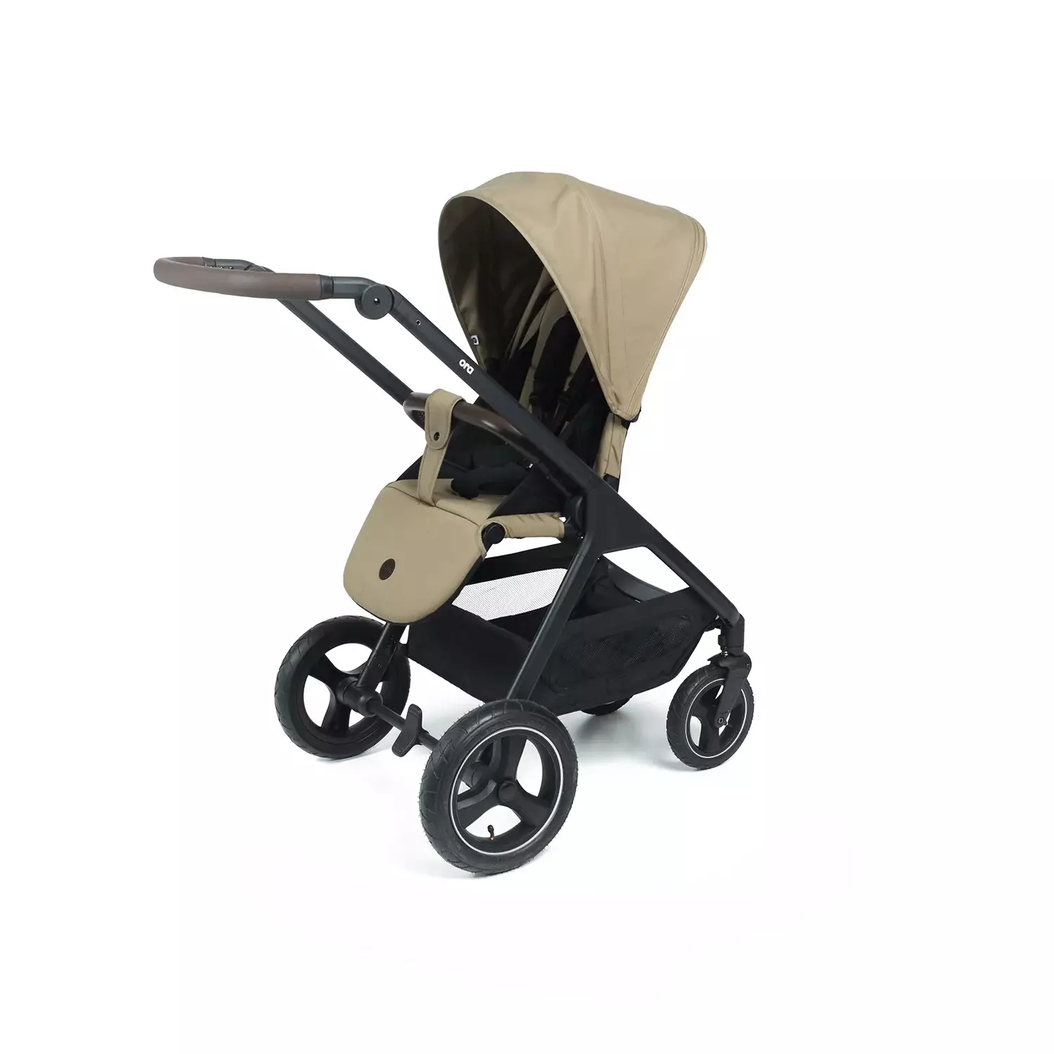 - Ratasistuin on tilava ja sen selkänoja säätyy kolmeen eri asentoon. Istuinosan saa käännettyä kasvot tai selkä menosuuntaa kohti ja helppokäyttöiset pehmustetut valjaat magneettilukolla pitävät lapsen turvallisesti kyydissä. Turvakaari on päällystetty tummanruskealla eco-nahalla.