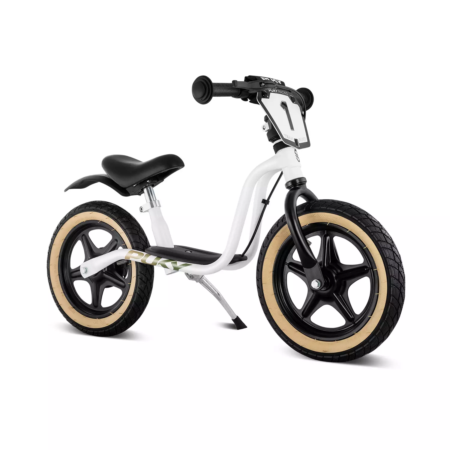 Puky LR 1 L BR potkupyörä käsijarrulla Supermoto, sopii noin kolmevuotiaalle lapselle. Tämä Supermoto potkupyörä saa pienet kilpailijat vauhtiin! Tyylikkäässä mustavalkoisessa menopelissä on rekisterikilpi ja takalokasuoja, jotka lisäävät sporttista ilmettä.