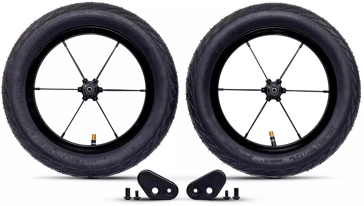 Pakkaus sisältää 14" vaihtopyörät ja kiinnityssarjan.