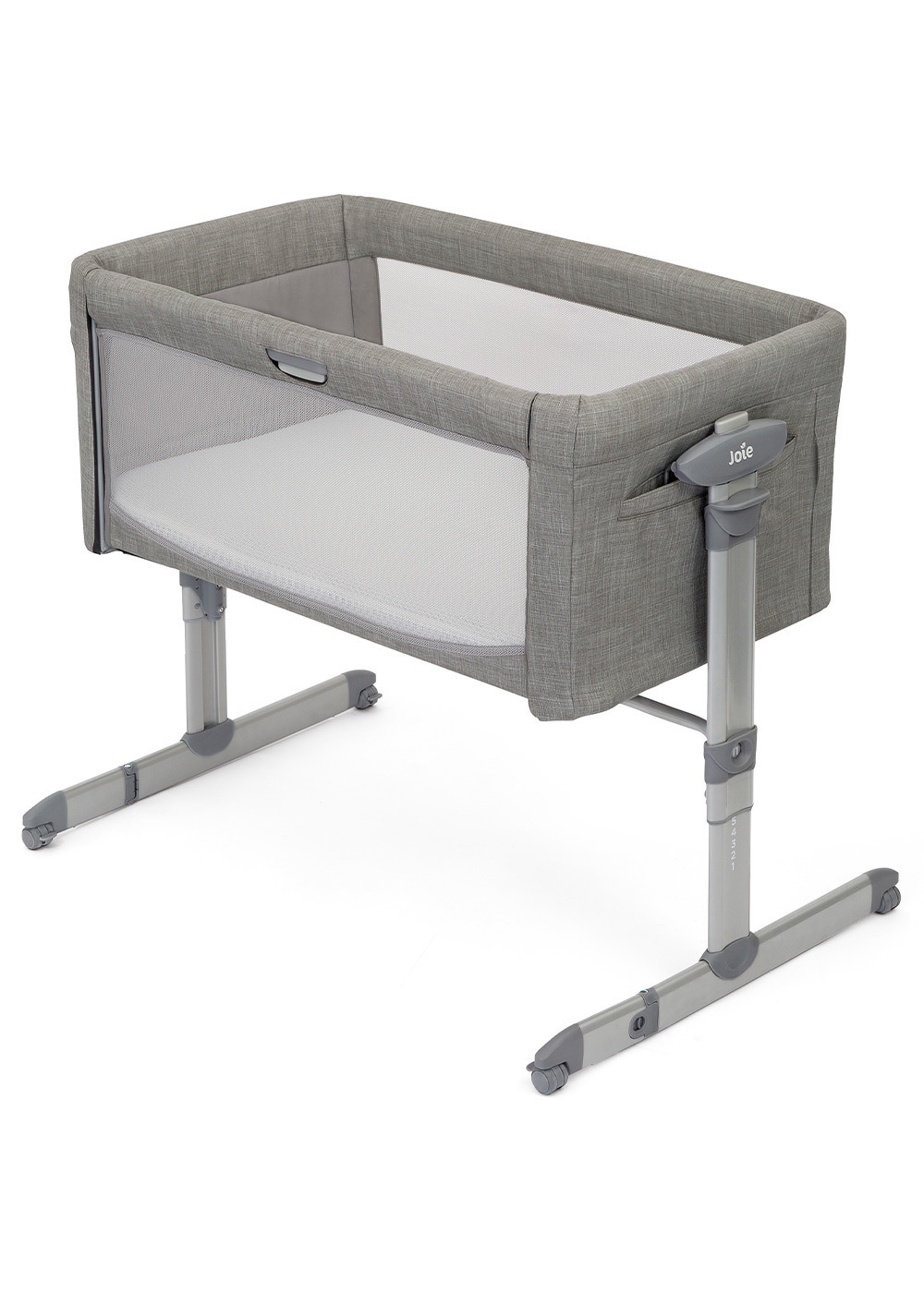 Sivuvaunusänky Joie Roomie Glide Foggy Grey on vauvan pinnasänky, jonka voit kiinnittää sivuvaunuksi vanhempien sänkyyn. Vauva on lähellä, mutta kuitenkin turvallisesti omassa sängyssään. Sivuvaunusta lapsi on helppo ottaa yöllä syötettäväksi ja rauhoiteltavaksi ilman, että tarvitsee nousta ylös sängystä.