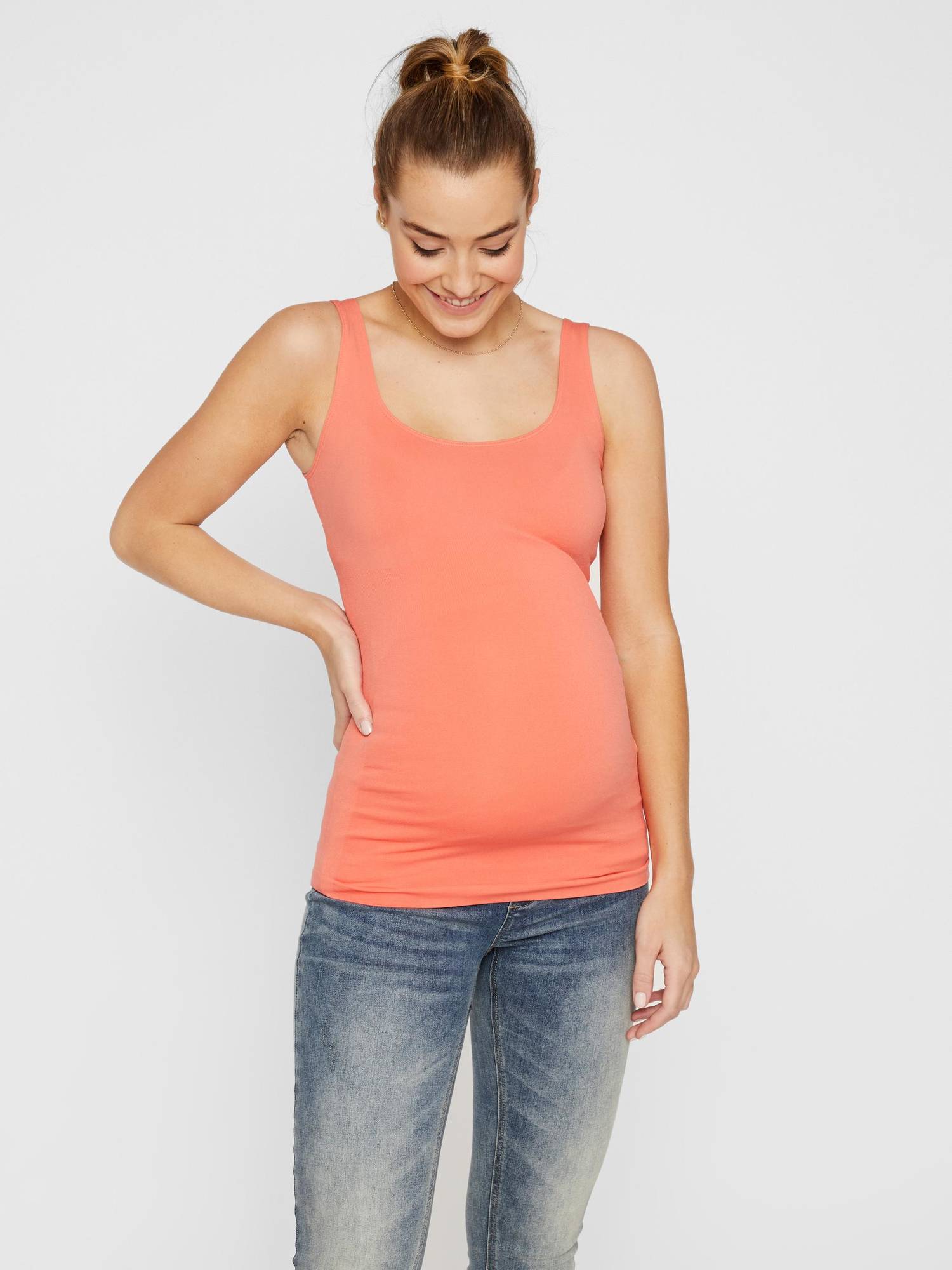 Mamalicious raskaustoppi hehkuvan korallin värisenä. Joustava ja mukava perustoppi koko raskauden ajaksi.