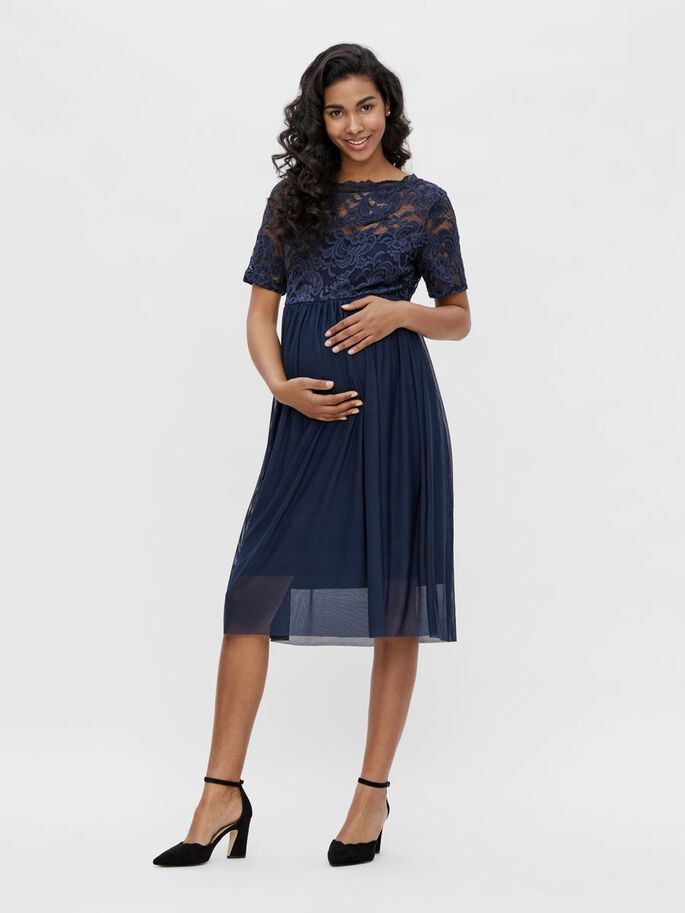 Mamalicious Mivana Mesh äitiysmekko Navy Blazer on todella kaunis A-linjainen mekko odottajalle.
