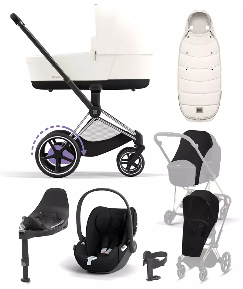 Cybex ePriam 4 yhdistelmävaunuihin on saatavilla myös paljon muita lisävarusteita. Katso ne Yhteensopivat tuotteet -välilehdeltä.