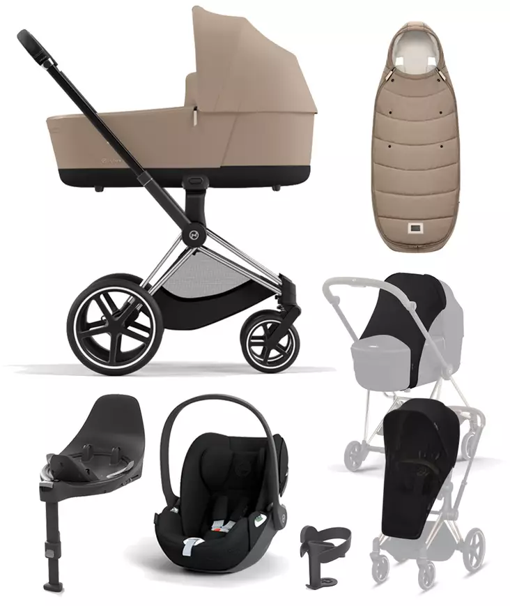 Cybex Priam 4 yhdistelmävaunuihin on saatavilla myös paljon lisävarusteita. Katso ne Yhteensopivat tuootteet -välilehdeltä.