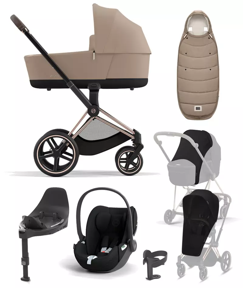 Cybex Priam 4 starttipaketti laajalla lisävarustepaketilla, Rosegold-runko - saat kauniit, laadukkaat lastentarvikkeet samassa paketissa. Tämä starttipaketti sisältää kaiken mitä tarvitset vauvan kanssa liikkumiseen kävellen tai autolla! Tässä paketissa kätevästi myös lisätarvikkeet mukana jokaiseen vuodenaikaan.