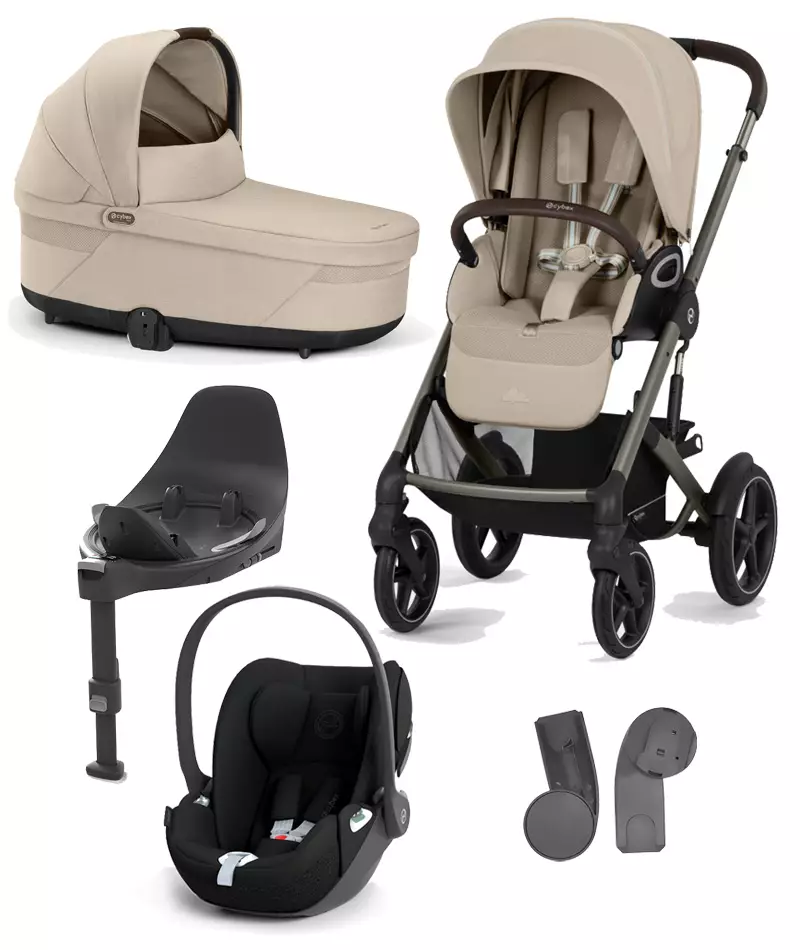 Paketissa on Cybex Cloud T turvakaukalo, joka on laadukas ja pitkäikäinen kaukalo - soveltuu 87 cm pituiselle lapselle saakka. Mukana myös Isofix-jalusta kaukalolle sekä adapterit, joilla kiinnität kaukalon vaunujen runkoon.