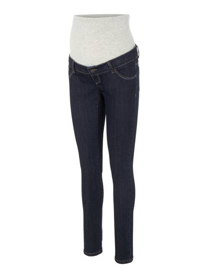 Tyylikkäät tumman siniset äitiysfarkut odotusaikaan.