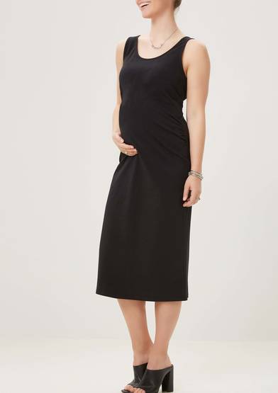 Äitiysmekko Mamalicious Lea Organic Midi Black on rento, hihaton mekko odottajalle midi-mittaisella helmalla. Perus arkimekko, jonka saa myös juhlavammaksi asustamalla. Mukavan tuntuista luomupuuvillaa.