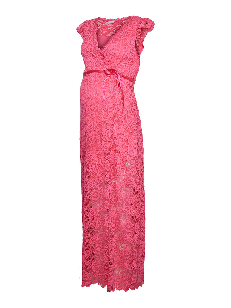 Äitiysmekko Mamalicious Mivane Sangria sunset on kaunis ja juhlava pitsimekko raskaana olevalle. Kauniin pinkin sävyisessä mekossa on lyhyet hihat ja solmittava vyönauha kauniina yksityiskohtana. Juhlamekossa on hyvin tilaa kasvavalle vatsalle ja tyylikäs käyttää myös raskauden jälkeen.