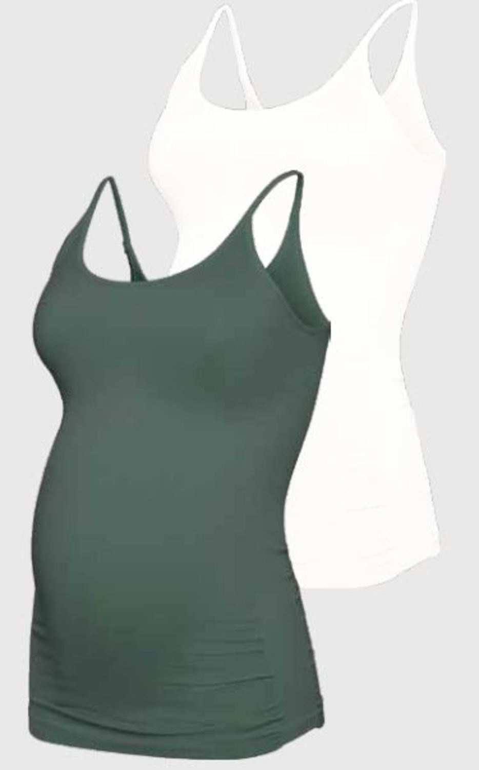 Mamalicious äitiystoppi odotusaikaan. Sisältää kaksi toppia, valkoisen ja vihertävän.
