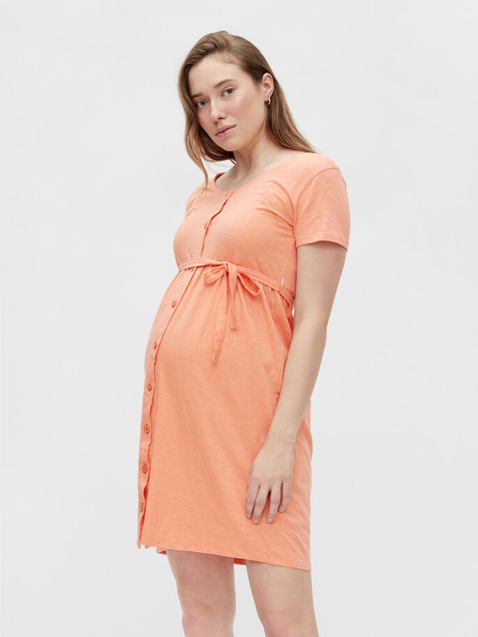 Mamalicious Jana äitiysmekko on kaunis mekko odotus-ja imetysaikaan. Kaunis corallin väri on helppo yhdistellä muiden asujen kanssa.