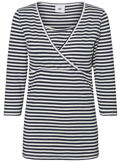 Imetyspaita Mamalicious Lou Organic Tess Navy blazer 2-Pack on kahden kappaleen paketti mukavan tuntuisia, luomupuuvillaisia imetyspaitoja 3/4hihoilla. Paidassa kiinni olevat, toppimaiset imetystä helpottavat rintaosat ovat kietaisumallisen etuosan alla. Imetyksen lisäksi paitoja voi käyttää myös jo raskauden aikana. Värinä Navy Blazer, toinen paita raidallisena, toinen yksivärisenä.