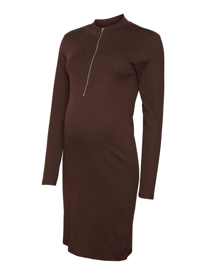 Mamalicious Mila Äitiysmekko Java on tyylikäs pitkähihainen äitiysmekko odottajalle. 2 in 1: mekko sopii myös imettämiseen. Ruskea mekko, jossa on kilpikonna kaulus ja vetoketju edessä.