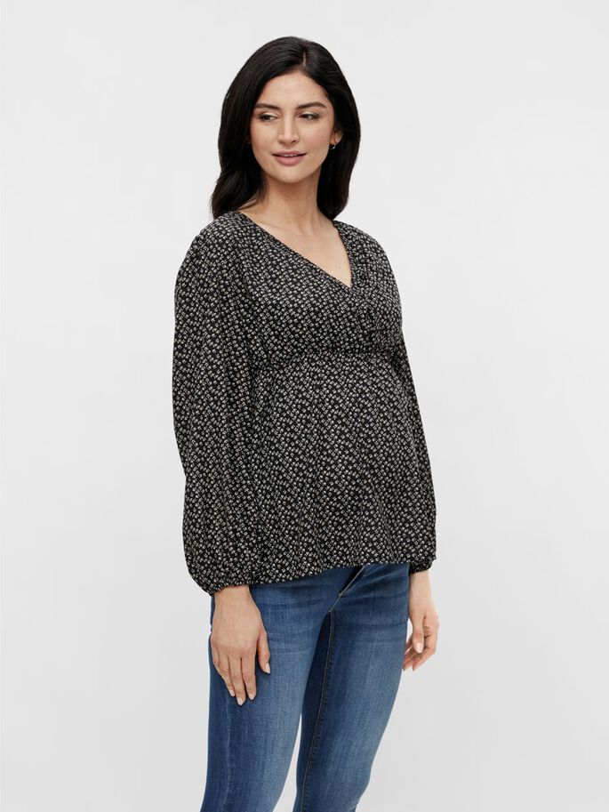 Mamalicious Missy Äitiyspaita Black-small flowers - kukallinen pitkähihainen paita.