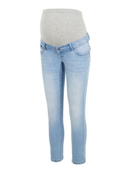 Mamalicious Nome äitiysfarkut Light blue denim ovat malliltaan cropped slim fit farkut.
