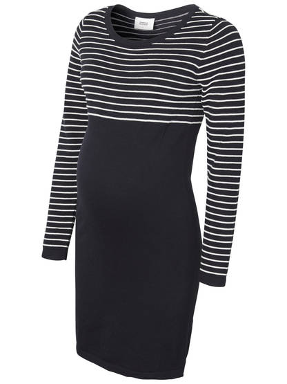 Mamalicious Silvia äitiysmekko on ihanan pehmeä neulemekko odottajalle. Tyylikäs arkimekko, jossa yhdistyvät raikkaat raidat ja tumman sininen alaosa, sopii niin töihin kuin vapaa-aikaankin. Mekossa on irrotettava nauha, jolla voit korostaa kasvavaa vatsaasi, tai jättää vyön kokonaan pois.Värinä tumman sininen Blue Depths.